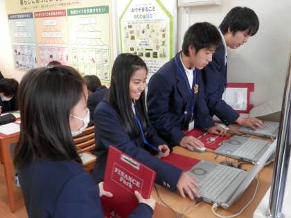今日は、1年生が朝から生き方探究館でファイナンスパーク学習です。