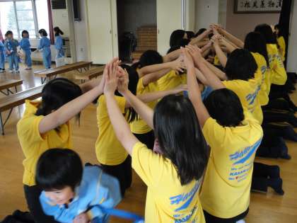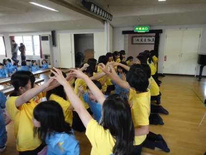 先ずは、人のトンネルを作って園児たちのお出迎えです。