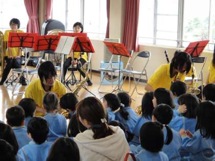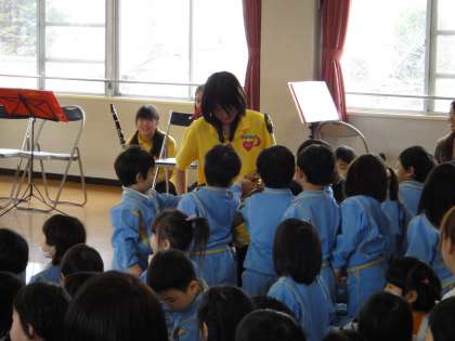 その後は、楽器の紹介と実際に幼稚園児たちに触れてもらいます。