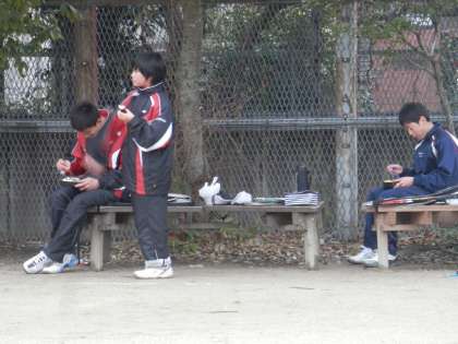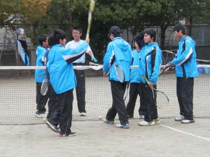 男子部の練習は午後ですが、女子部が校外で活動しておりコートがあいているため、たくさんの人が着て自主練習を行っています。