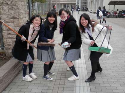 花山中の生徒たちはこれくらいの寒さに負けてはいません。