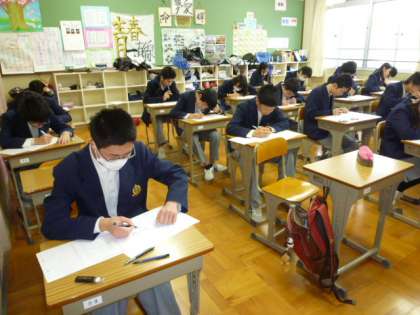 3年生の中学校生活最後の定期考査の2日目の様子です。凛とした空気のなか,すべての3年生が真剣に向かい合っています。