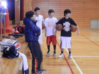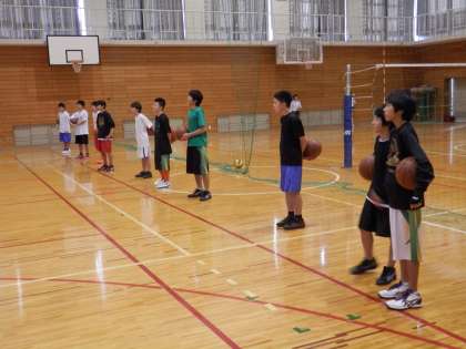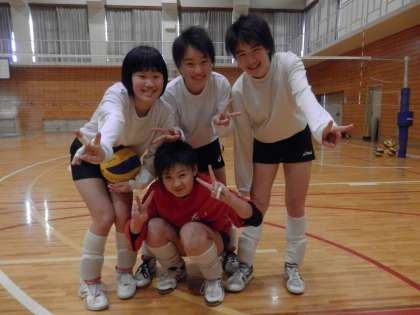 体育館では、女子バレー部と男子バスケットボール部が活動をしています。