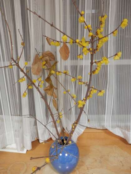 近所の人にもらって頂くつもりの蝋梅の一枝が約3週間庭に置かれたままになっていました。花瓶に挿すのに丁度よい大きさのその枝についている蕾は固く閉ざされたままです。『もうダメかもしれない』リビングや校長室の蝋梅が、花びらを落とし始めていることからも、そう思いながら校長室の花瓶の中にそれを添えました。翌朝、扉を開けた瞬間、芳香が私を驚かせました。蝋梅の花はつぼみが開くときに芳香を放ちます。何と、前日に挿したそれが一気に開花し始めたのです。しかも、これは誠に不思議な話ですが、盛りを終えかけていた枝までもが元気を取り戻したのです。お蔭で、今週いっぱい蝋梅の芳香を楽しむことが出来ました。