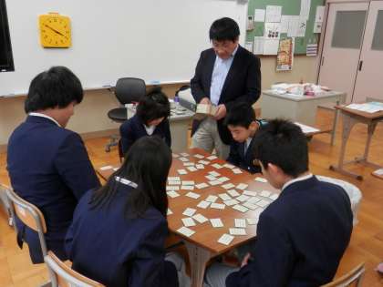 1・2年生は国語の時間で、今日も百人一首です。ドンドン速く札がとれるようになっていきます。