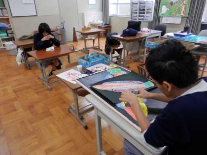 3年生は今週末に開催予定の「小さな巨匠展」へ向けて、作品の完成を急いでいます。