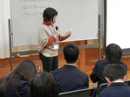 保護者の方から集めた子どもたちの「誕生秘話」が学年の先生によって朗読披露されました。