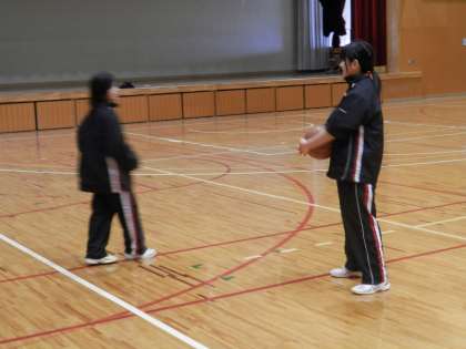 体育館では女子バスケットボール、テニスコートでは女子部が活動をしています。