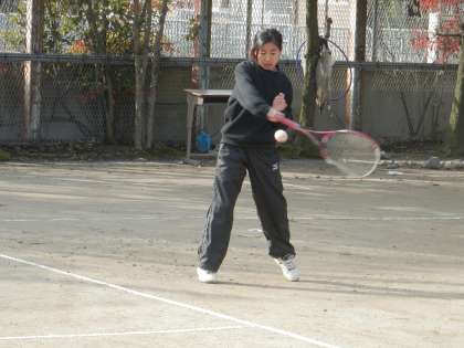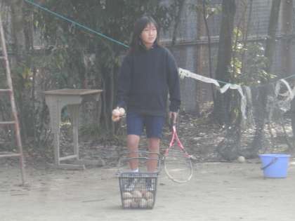女テニも、分かれての練習でしょう。姿の見えない人たちがいます。