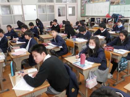 英語は4組、社会は3組です。どちらのクラスも熱心に取り組んでいました。