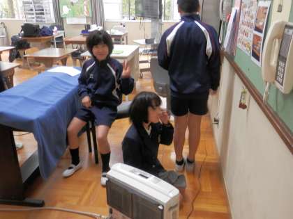 6組の皆さんは、思わずファンヒーターの前へ集まりました。