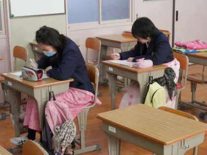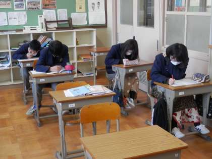 3年生の登校している生徒は、私立高校で進路の決定している子と公立高校が本命であっても、敢えて前期試検を受けない子です。