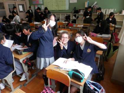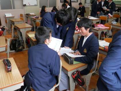 2年の階には、既に修学旅行の事前学習でまとめた模造紙が掲示したありました。
