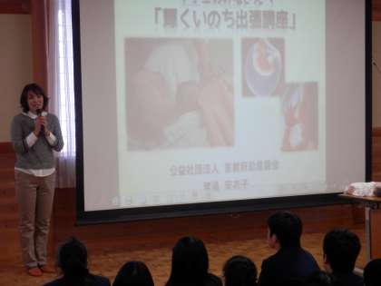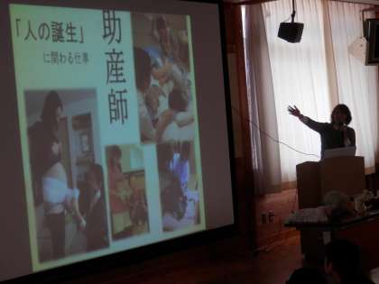 毎年、この時期には出産現場に立ち会っておられる助産師さんに来ていただいてお話を聴きます。