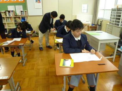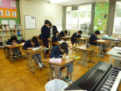 6組では第5回定期考査2日目が1・2・3年揃って実施されました。平成26年度最後の定期考査に真剣な表情で取り組んでいます。