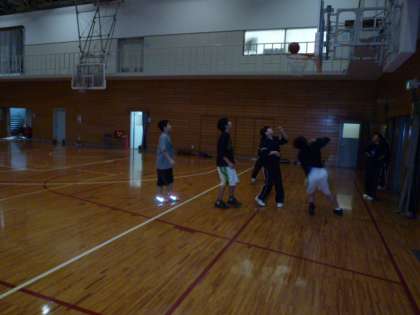 男子バスケットボール部は5on5,女子バスケットボール部は男子部員とともに3on2の練習です。