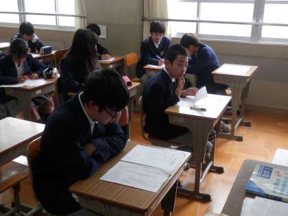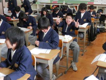 返却されてたテストの点数に満足したのか、上機嫌でカメラに顔を向けた生徒もいました。
