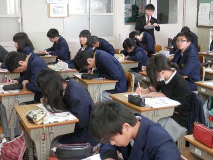 2年の社会科の授業を観ている時にチャイムが鳴り、3時間目が終了しました。今、2年生は大変面白いところを学んでします。