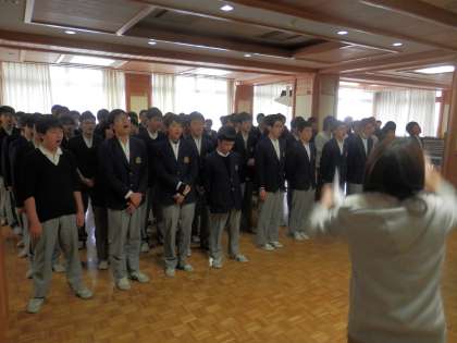 3年生は、多目的室で合唱練習を行っていました。