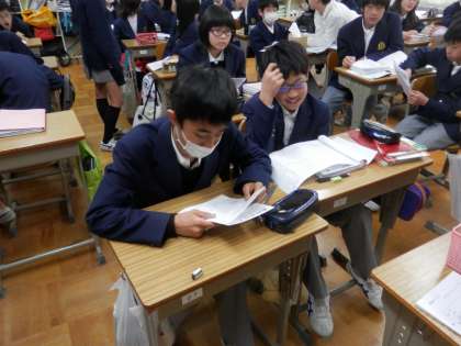 ペア学習をすると、生徒が教室内を動くのでザワザワした感じがありますが、今の英語学習では、とても大切な時間だと考えられています。