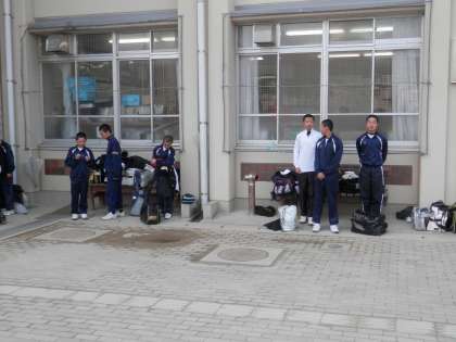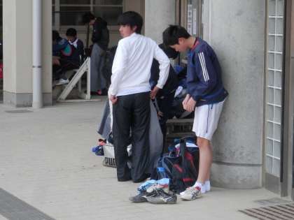 朝練習を終えて、着替えているサッカー部と野球部の子たちの様子です。