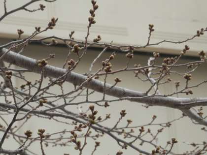 校門の桜の木は、堅かった蕾を膨らませ、開花の時を今か今かと待っているようです。