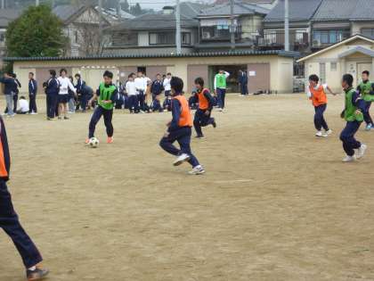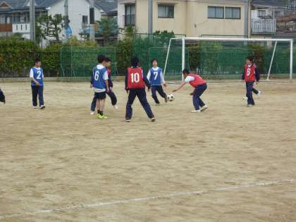 男子の球技大会は快晴のもとグランドでサッカーです。女子と違って,大きな声がとびかっています。