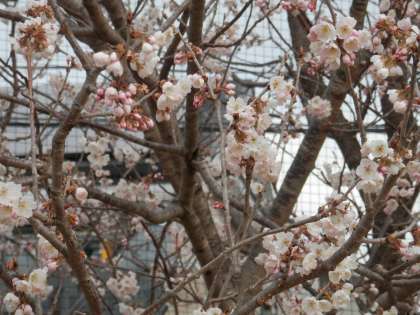 グランド北西の早咲きの桜は、昨日くらいから開花し始め、3分咲きとなりました。