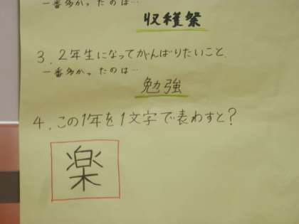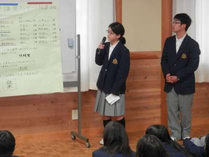 各学級の評議員が、学年アンケートの集計結果を発表しました。