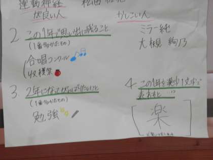 「一番おもしろい人」となったある女子に「来年は“一番かしこい人”に名前を出してもらわないと」と言ったところ、「頑張るわ!」という答えが返ってきました。