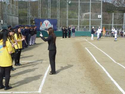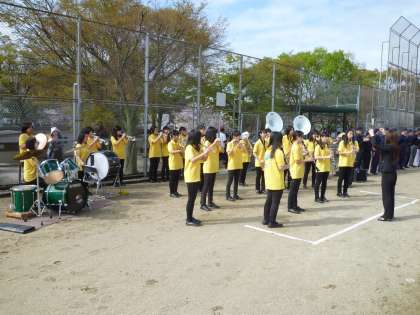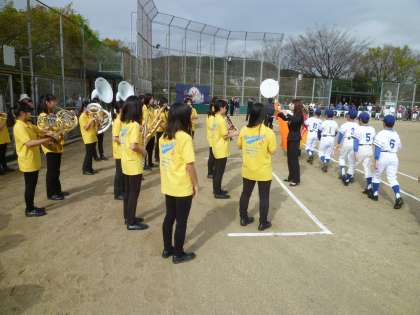 今日は吹奏楽部は勧修寺グランドで行われた山科の学童軟式野球大会の開会式に参加し,演奏を披露してくれました。