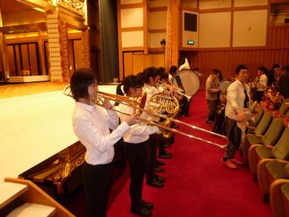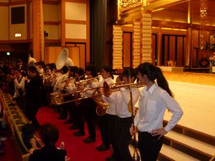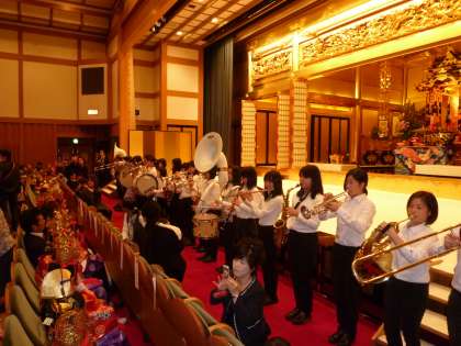 吹奏楽部は午前中,東山浄苑で行われた花まつりでのお稚児さん行列の先導役を依頼され出演・演奏しました。