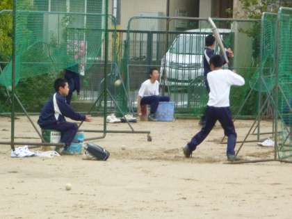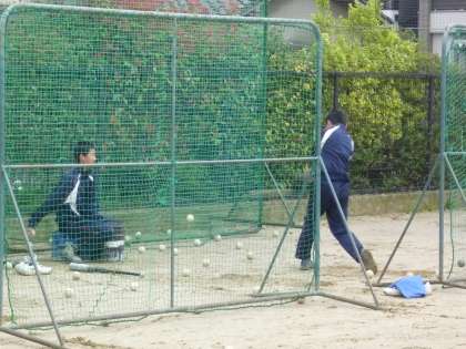 始業式の日も朝練でいくつかの部活動は汗を流しています。まずは,野球部。昨日は雨のため練習試合が中止となってしまいましたが朝から練習に励んでいます。
