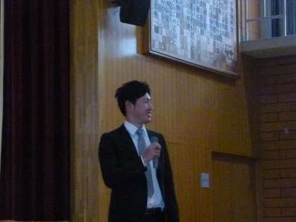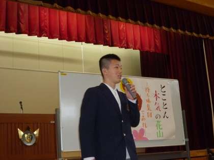 始業式のなかで,生徒・教職員から「今年のあなたの本気」を発表してもらいました