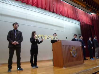 3年生の学年担当・学級担任の発表のとき,3年生から学年目標が披露されました。3年生の学年目標は「Just do it」です。