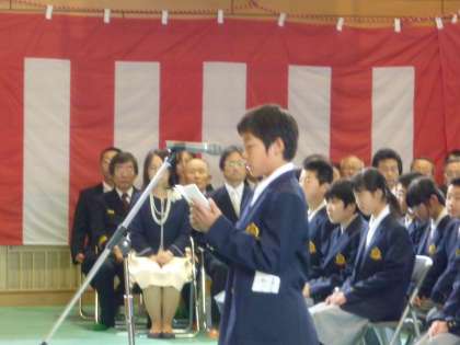 新入生代表より,入学のことばが披露されました。充実した中学校生活を送るぞという決意がにじみでる,フレッシュなことばでした。