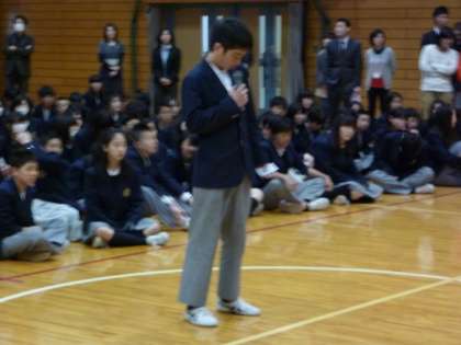 生徒会からのあいさつのあと,各クラスにプレゼントです。