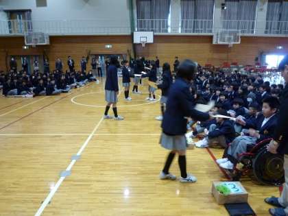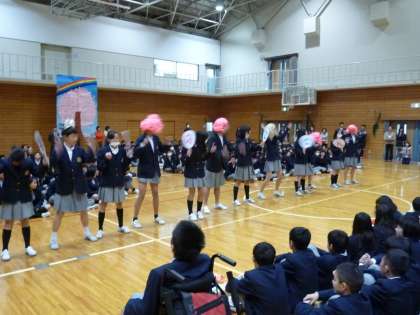 美術部からカレンダーのプレゼントのあと生活保健委員会から歌と踊りが披露されました