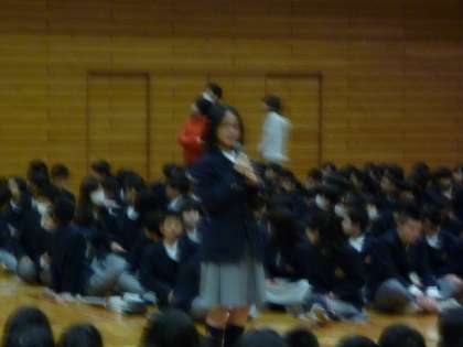 文化図書委員会から桜の木をモチーフにしたメッセージボードが紹介されました。最後に新入生からお礼の言葉が語られました。