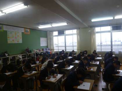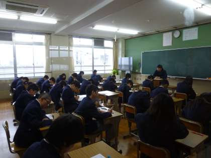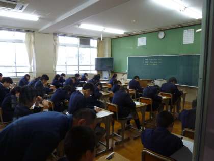 2年生は,機能に引き続き休み明けテストが行われました。全員引き締まったいい表情で試験を受けています。
