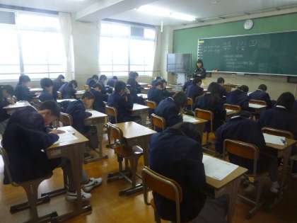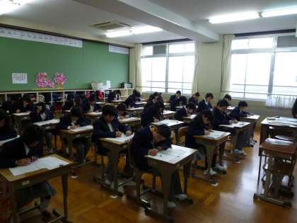 1年生は今日,中学校ではじめてのテストを受けました。ジョイントプログラムとよばれる小6の復習テストです。国語と算数(数学)の2教科でした。できたでしょうか。