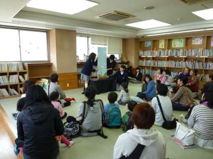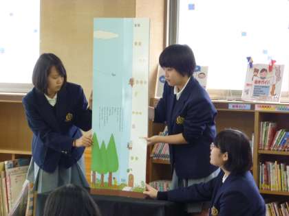 10:30から,美術部と家庭科部が合体をして山科図書館にて読み聞かせ活動を行ってくれました。