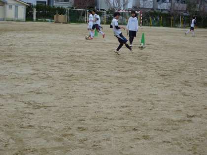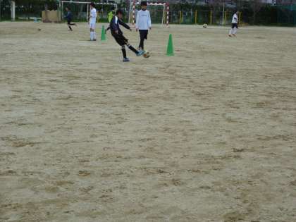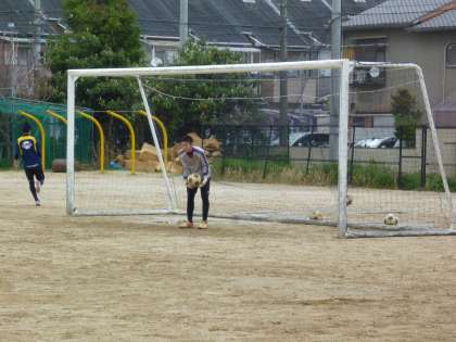 午後からグランドではサッカー部が練習をしていました。シュートの練習です。