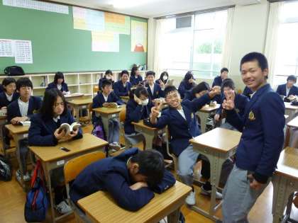 朝読書に取り組んでいる3年生ですが,写真を意識している人もいますね。