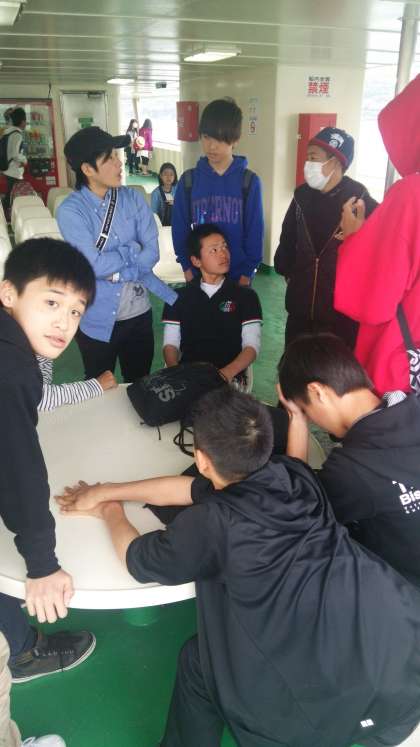 フェリーに乗って,ファームステイ先の伊江島へ向かいます。