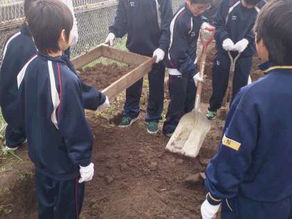 小雨の降る中でしたが,1・2年生は「いつも良い作物を育ててくれてありがとう。今年もよろしく!」という思いを込めて,土起こしを頑張ってくれました。