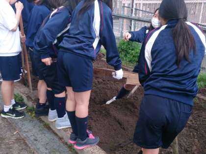 小雨の降る中でしたが,1・2年生は「いつも良い作物を育ててくれてありがとう。今年もよろしく!」という思いを込めて,土起こしを頑張ってくれました。