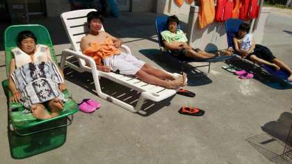 ビーチでのアクティビティは,空と海の青さがまぶしいですね。