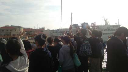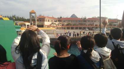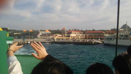 遠ざかる島人の方々に手を振りながら,「ありがとう。また来ます!」と叫びます。