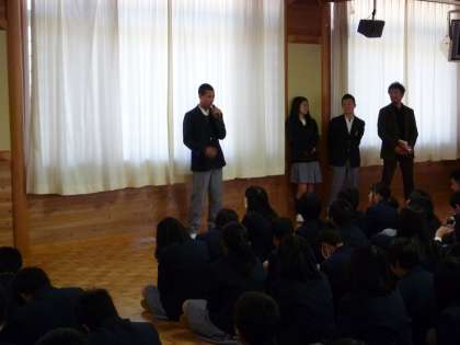 修学旅行委員からの振り返りのあと,個人の感想が次々と述べられました。